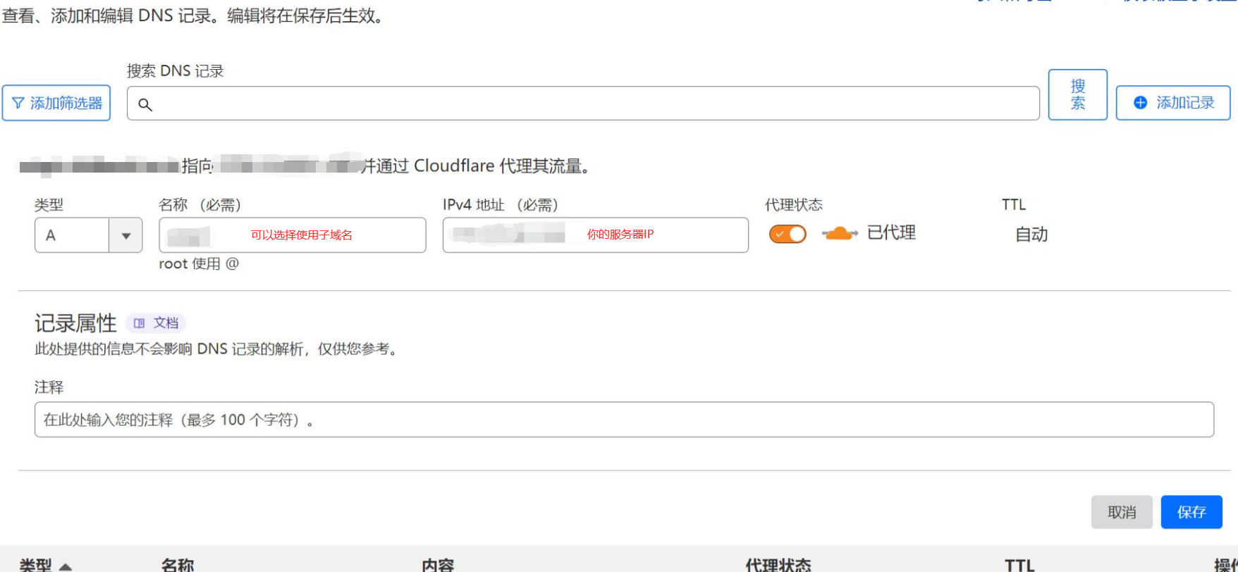 - 将域名的DNS服务器更改为CloudFlare,并在CloudFlare进行绑定。